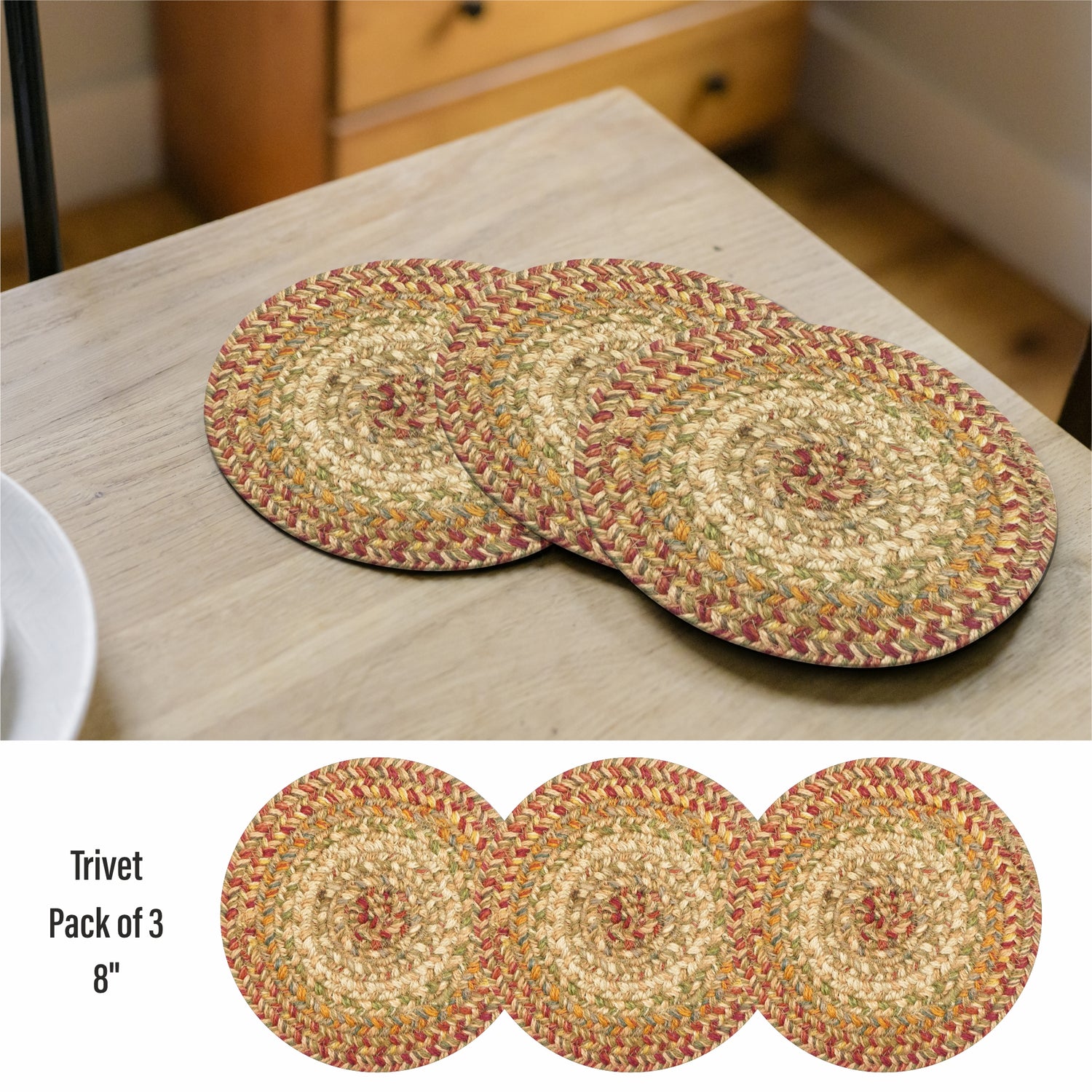 Harvest jute braided accessories feature a warm blend of beige, red, green and golden yellow. Handcrafted from premium jute, it offers a timeless look with a tightly braided, non-shedding construction that lays flat on your furniture and protects it.
