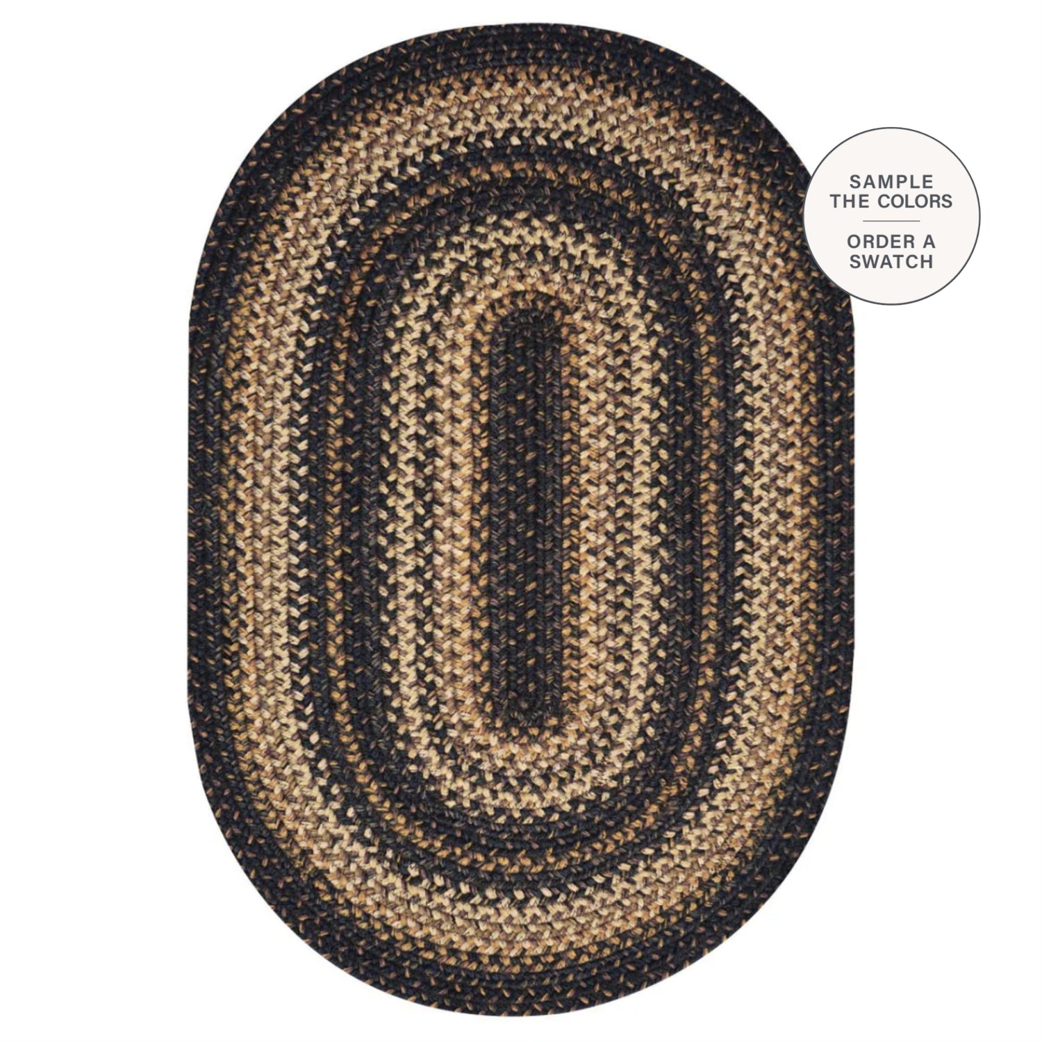 Add timeless charm to your home with the Kilimanjaro jute braided oval rug. This rug features a rich mix of black, brown, coffee, cream, and tan tones. Hand-braided from durable, non-shedding jute, it offers a flat, reversible design perfect for any room.