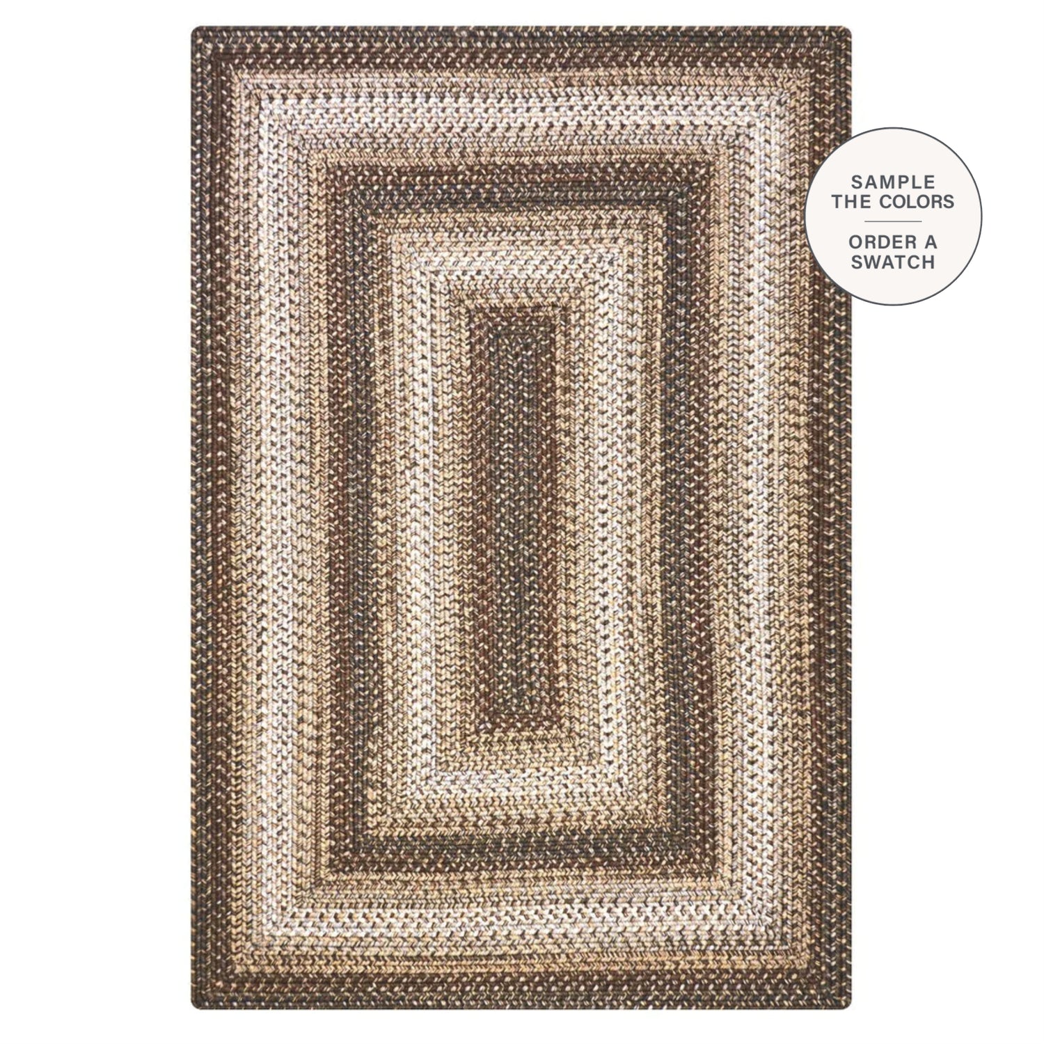 The Brown Ultra Durable braided rectangular rug brings rustic charm to your space. Made from premium polypropylene, it features natural brown, tan, and grey tones perfect for your wood floors, decks, and patios.