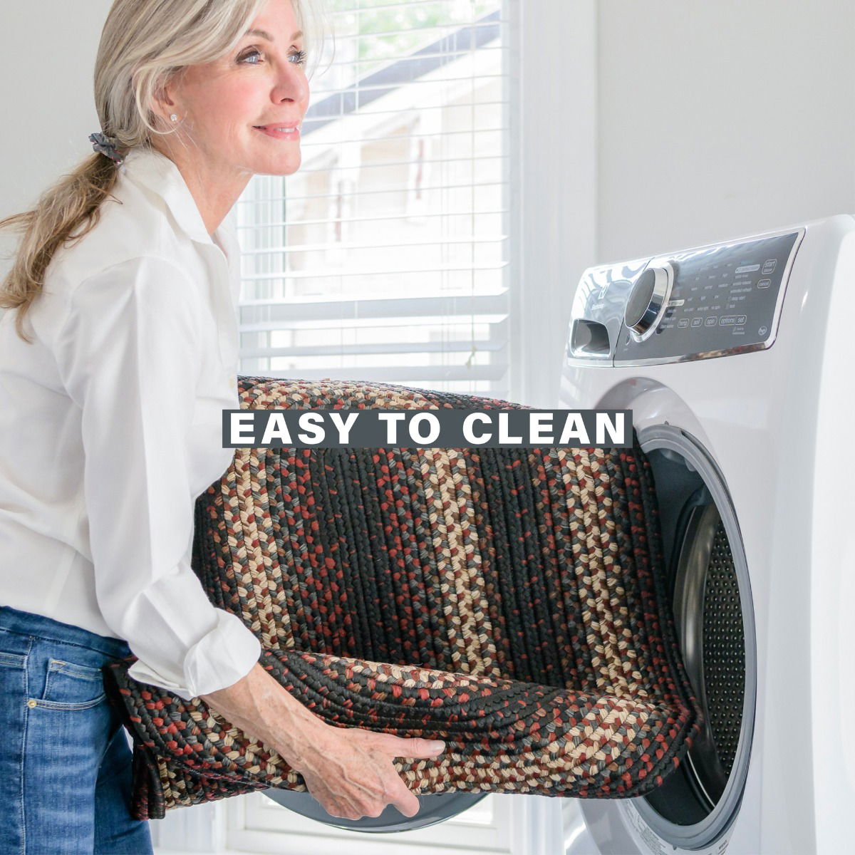 Easy to clean and versatile, this braided rug enhances living rooms, dining rooms, patios, and more. Available in multiple sizes with custom options for the perfect fit.