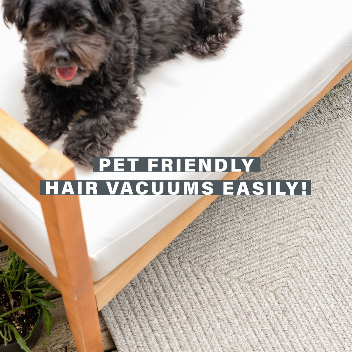 The Slate Outdoor Braided Rectangular Rug blends cool light and dark greys for a sleek, modern look. Crafted for durability, it withstands outdoor elements while adding style to patios, decks, porches, or gardens.
