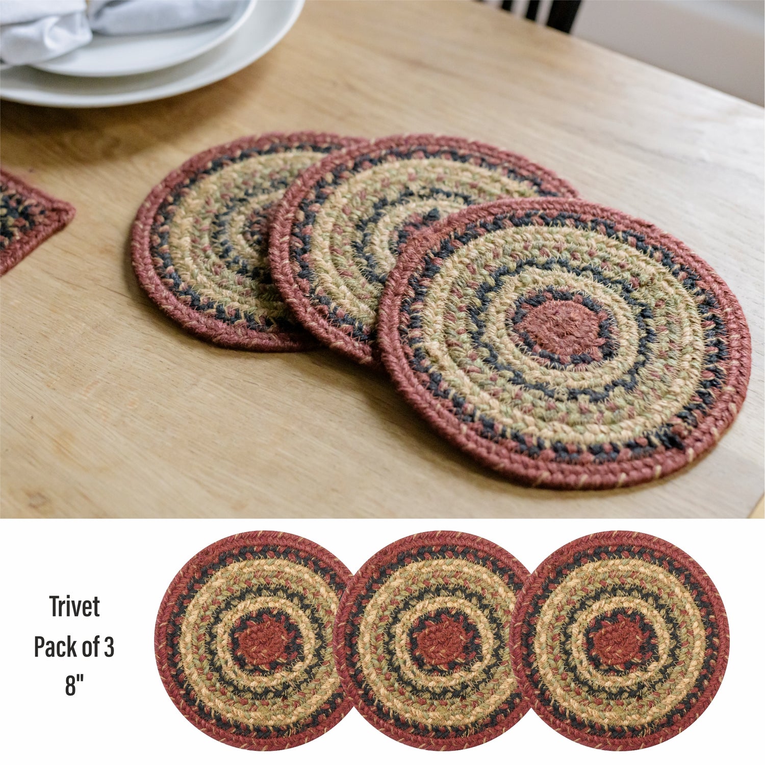Highland jute braided accessories feature a warm blend of navy, burgundy, green & off-white. Handcrafted from premium jute, it offers a timeless look with a tightly braided, non-shedding construction that lays flat on your furniture and protects it.