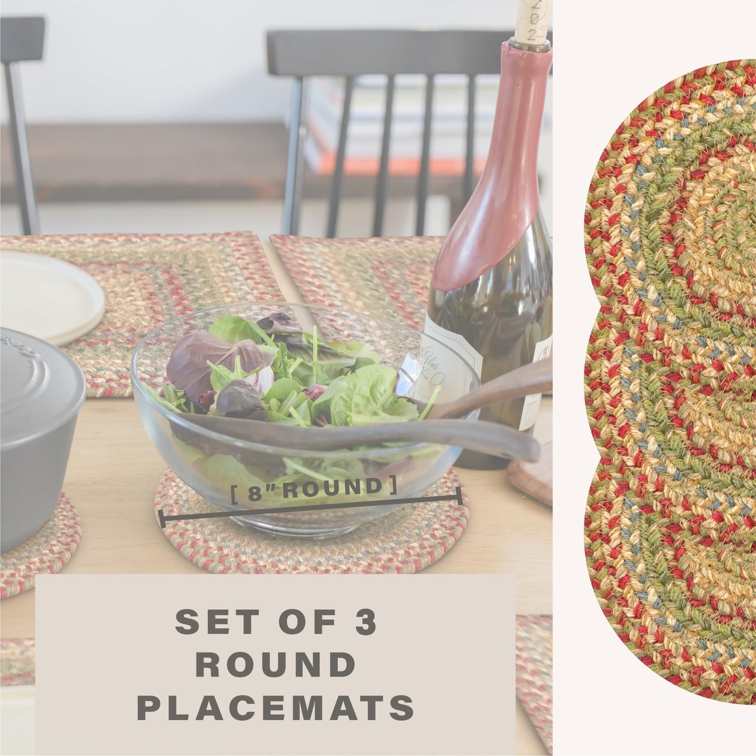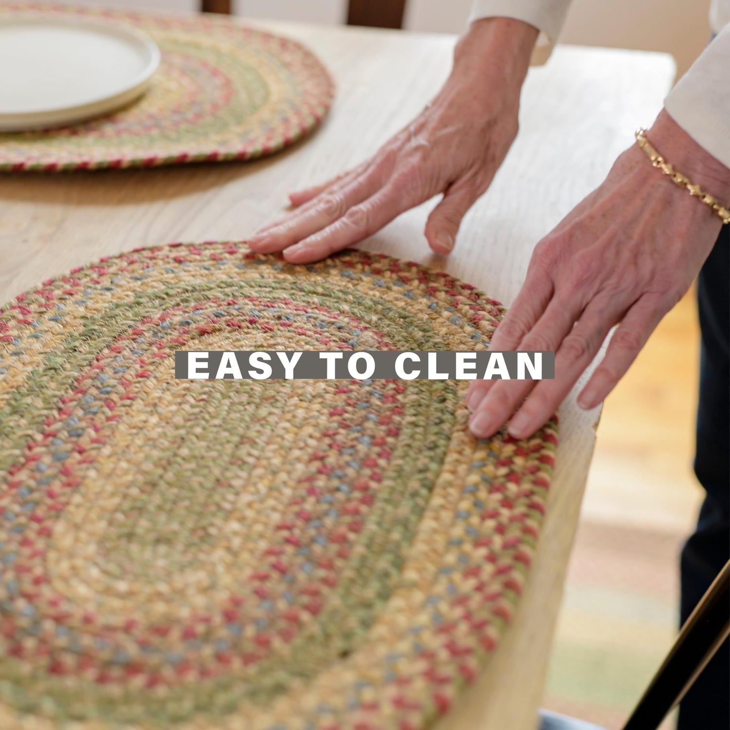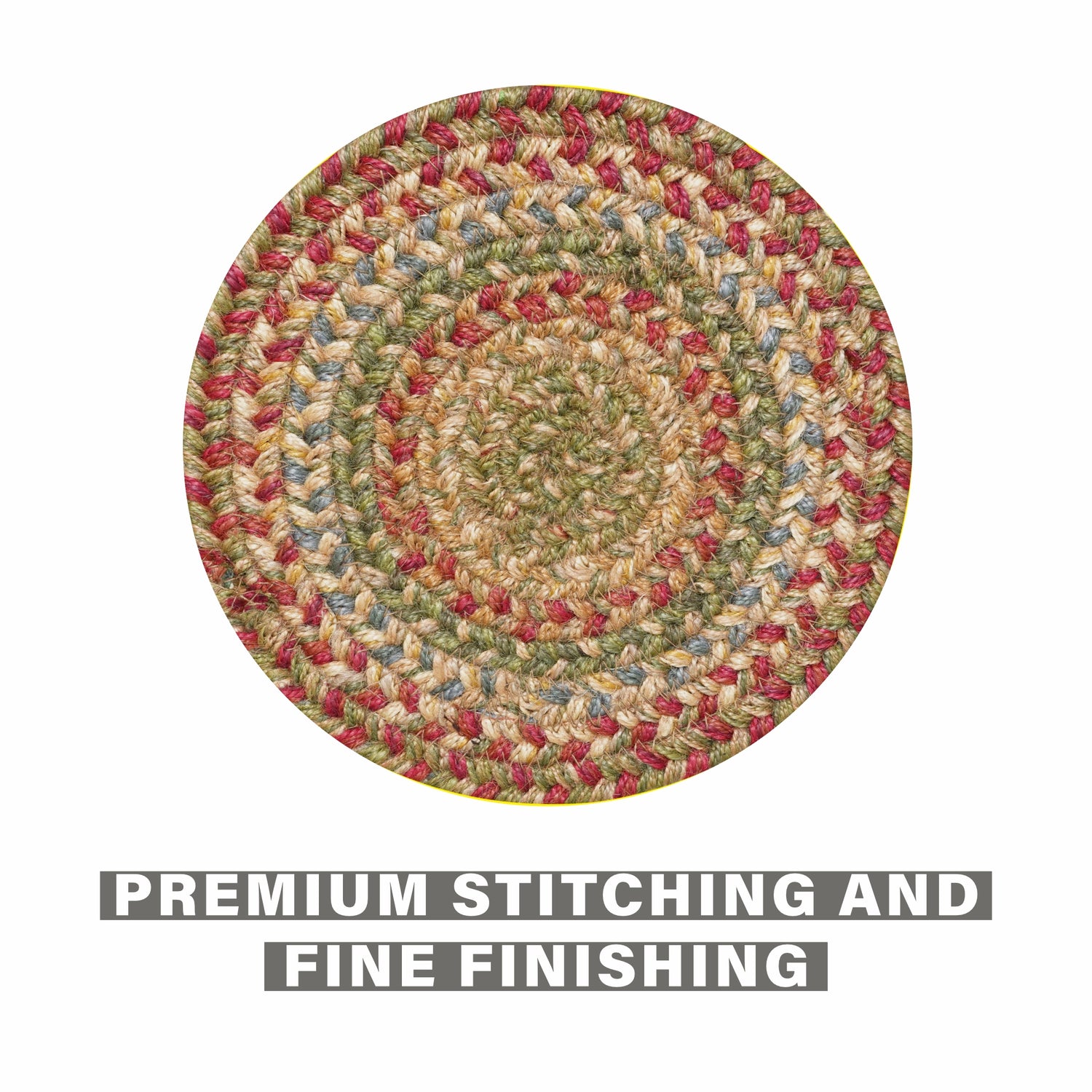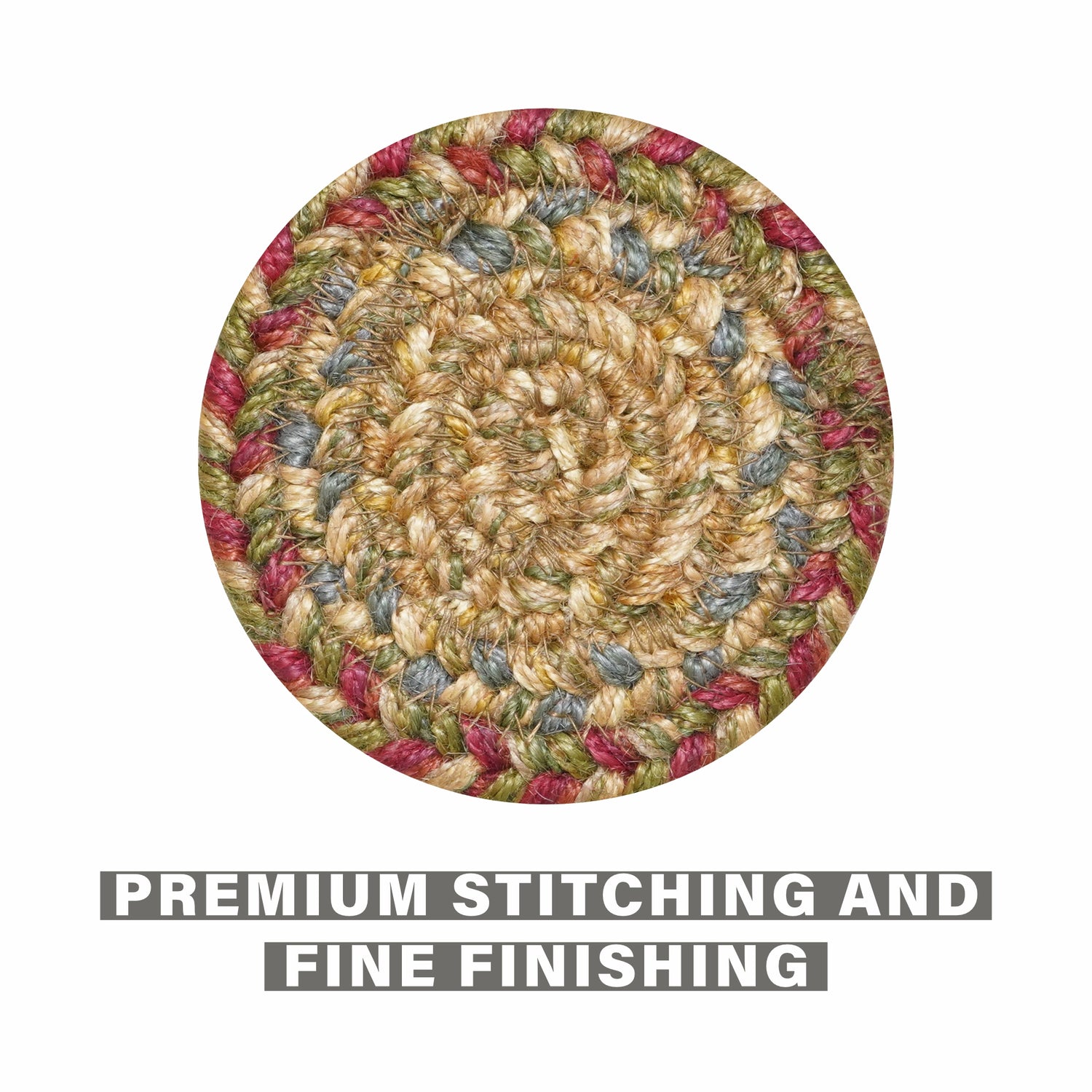 Azalea jute braided accessories feature a warm blend of red, green, blue, gold, tan and off-white. Handcrafted from premium jute, it offers a timeless look with a tightly braided, non-shedding construction that lays flat on your furniture and protects it.