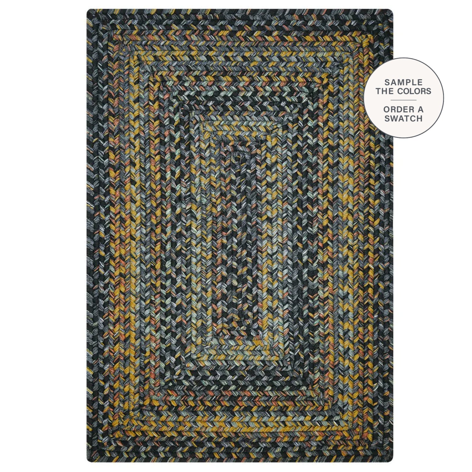 The Black Forest Outdoor Braided Rectangular Rug blends black, grey, and mustard for a bold yet versatile look, making it one of our most popular designs.