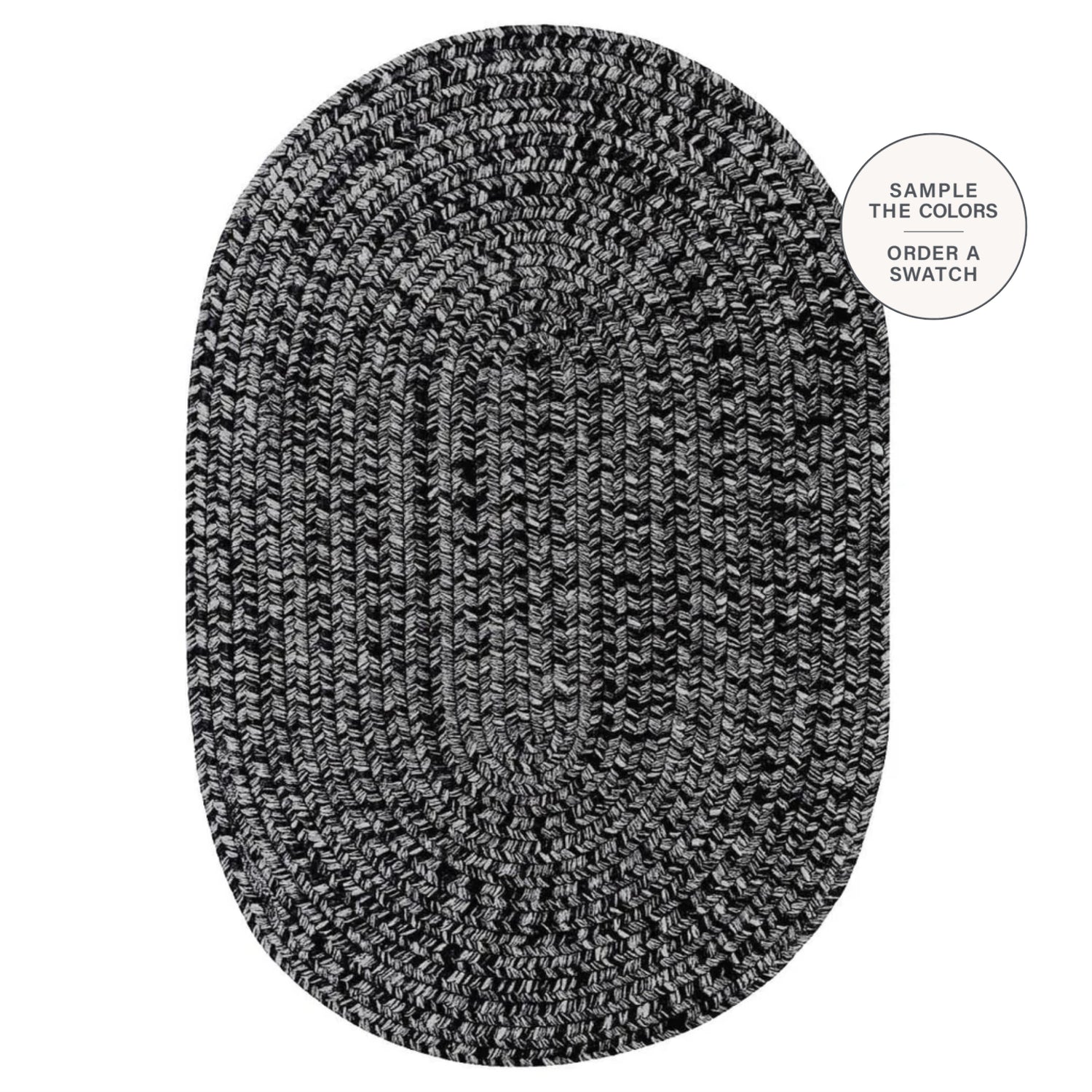 The Black Outdoor Braided Oval Rug blends black with flecks of grey for a timeless indoor/outdoor look. Crafted from high-quality, washable, and mold-resistant materials, it’s perfect for patios, decks, and gardens.