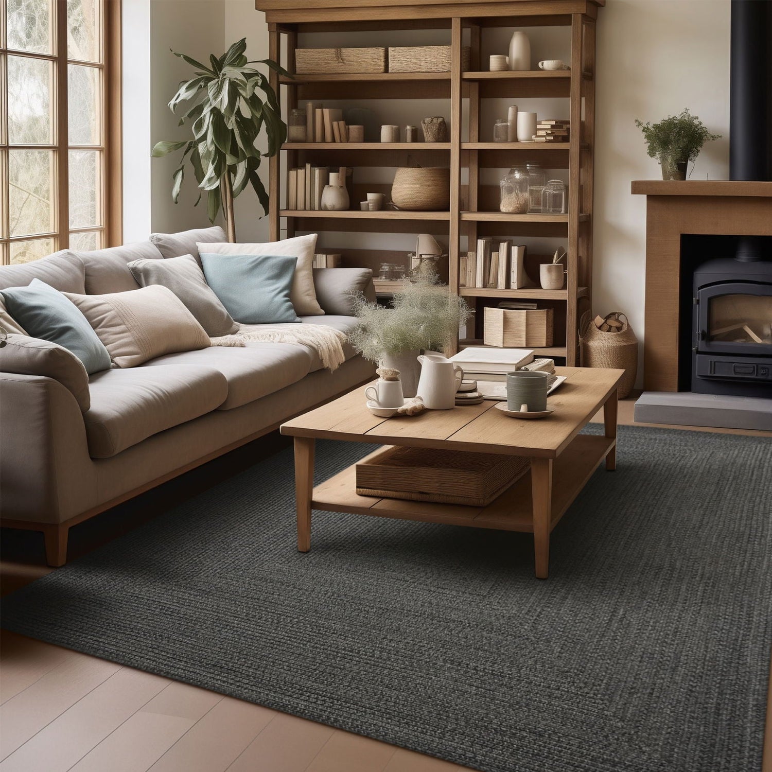 The Black Ultra Durable Braided Rug blends classic black with flecks of grey for timeless indoor/outdoor style. Made from exclusive high-performance yarn, it’s washable, mold- and mildew-resistant, spill-proof, and perfect for active families.
