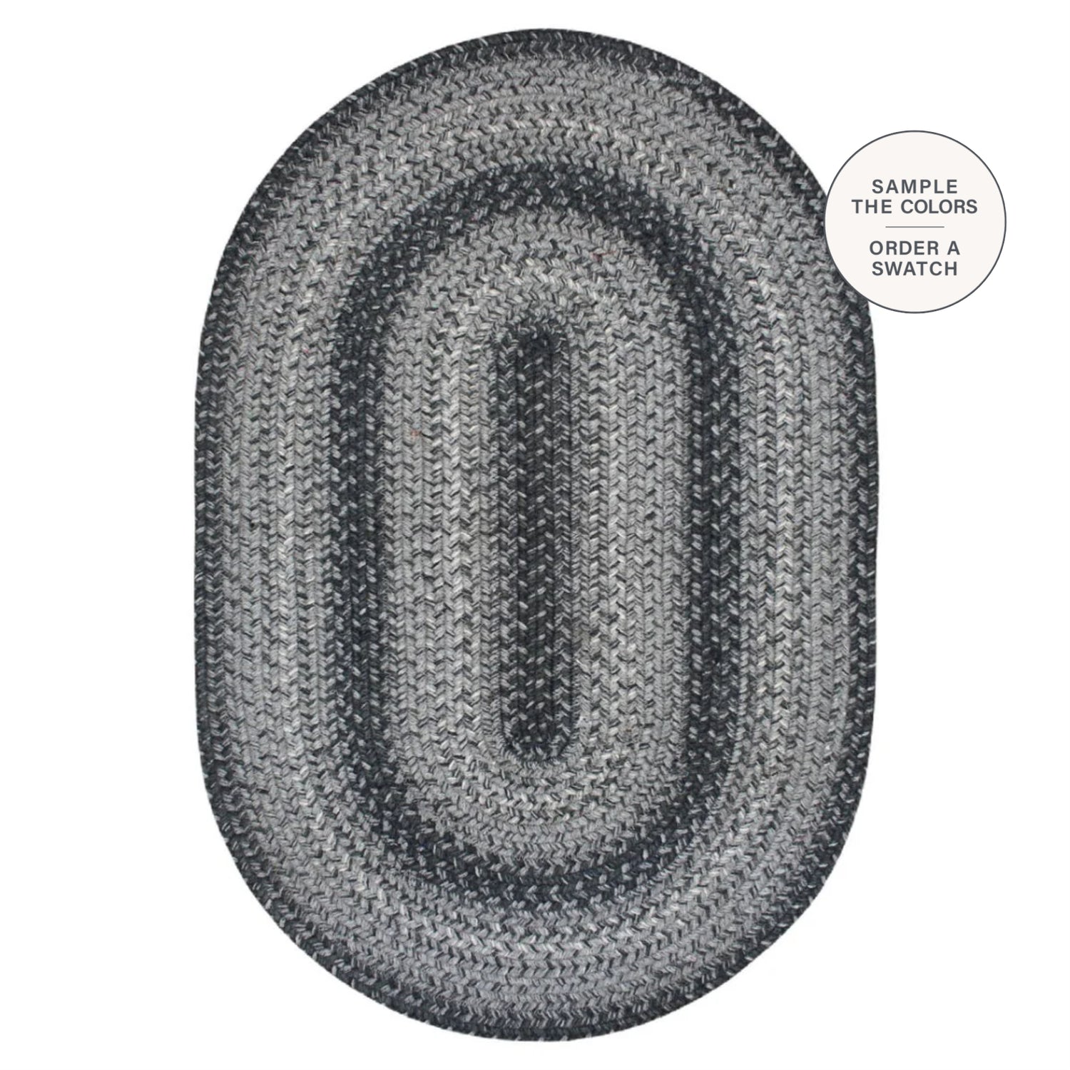 Bring cozy elegance to your space with the Flint Hill Grey Jute Braided Oval Rug. Crafted from natural jute, it features a range of greys from light to charcoal, blending traditional charm with modern appeal.