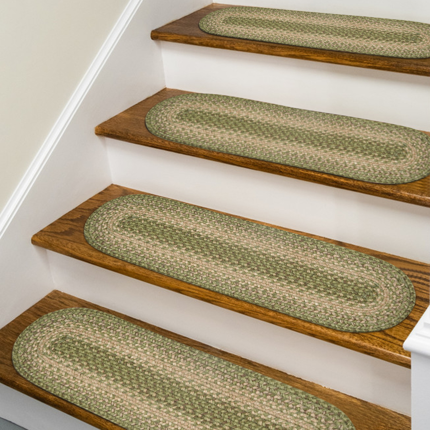 Grassland Green Jute Stair Tread - 8 x 28" Stair Tread Oval (13 Pcs) is backordered and will ship as soon as it is back in stock.