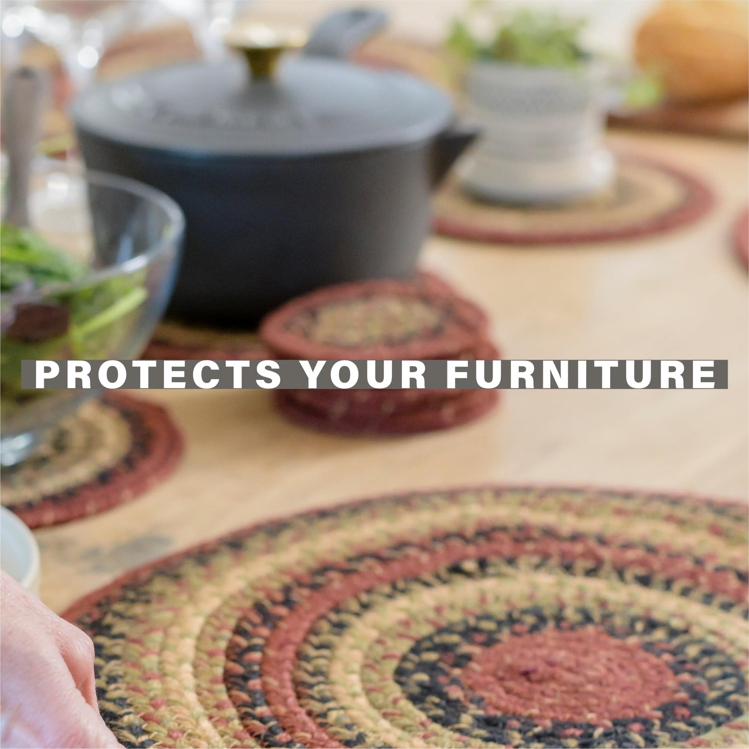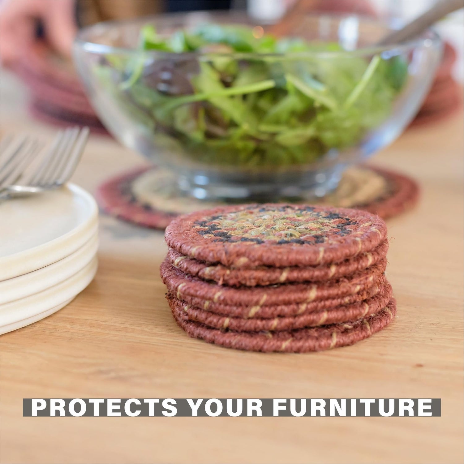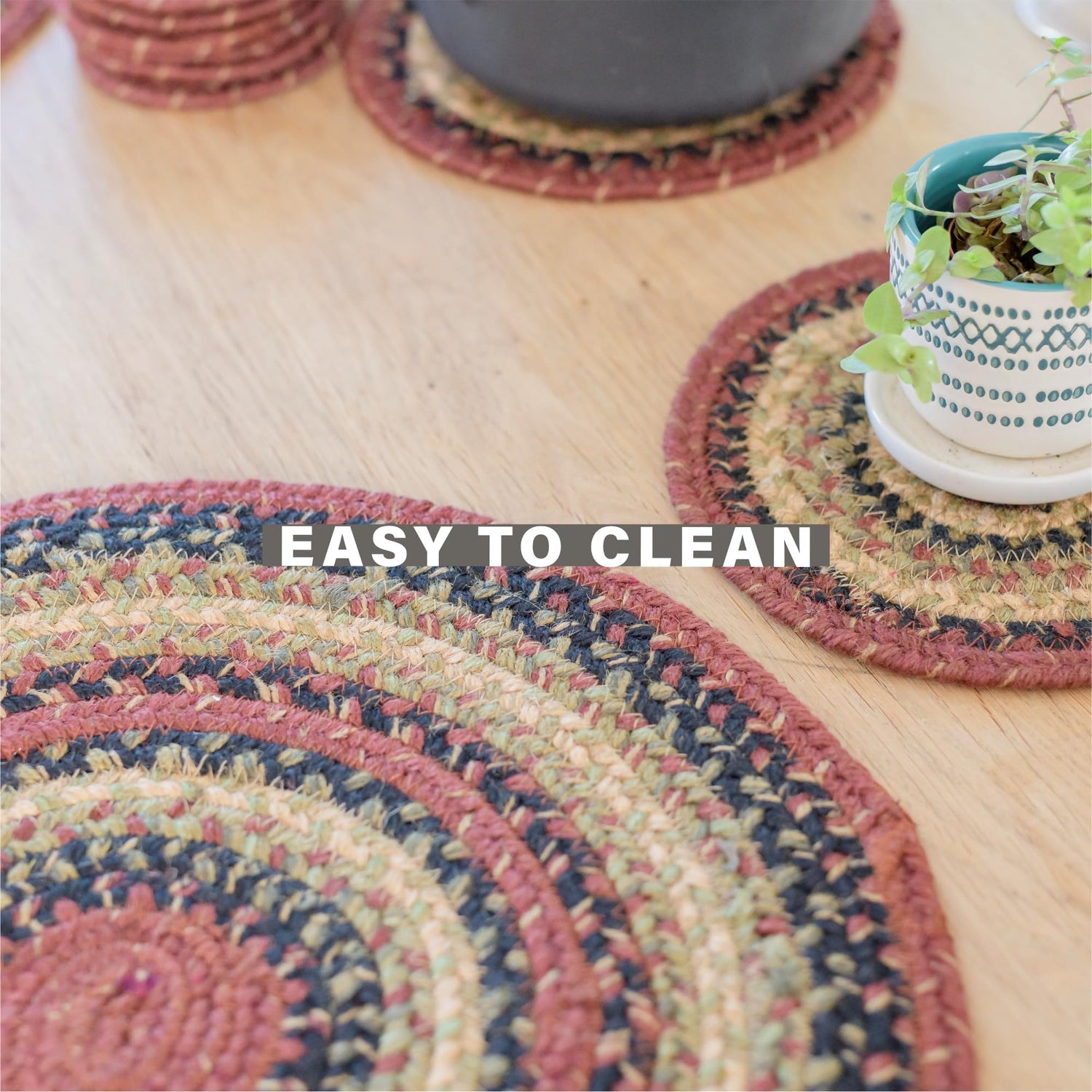 Daily Maintenance: Shake out placemats and table runners regularly. For coasters and trivets, wipe clean after each use.