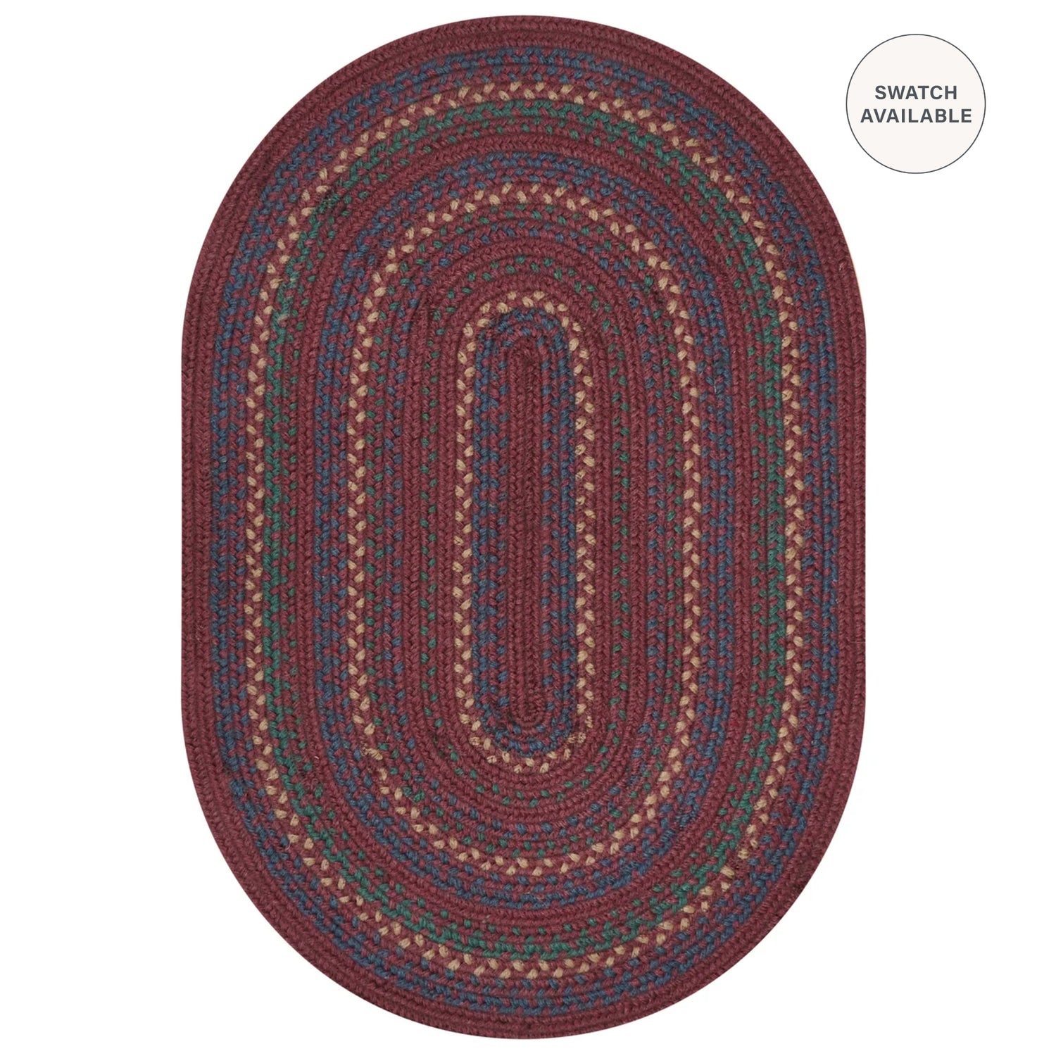 Bring warm, rustic charm to your home with the Jamestown oval braided rug. This oval rug features a classic mix of burgundy, navy, green, and tan. Hand-braided from premium jute, it is non shedding jute rug that lays flat with long-lasting color.
