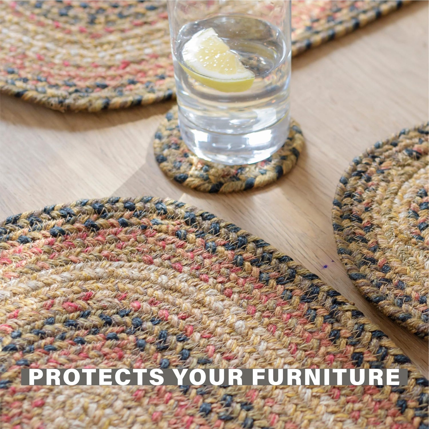 Versatile Design for Every Room: These accessories are designed to be both functional and beautiful, making them suitable for every corner of your home. Use placemats and trivets to protect and style your kitchen and dining tables, while coasters bring a touch of elegance to your office desk. These braided accents highlight coffee tables and side tables in the living room, and add a charming touch to nightstands or dressers in the bedroom.